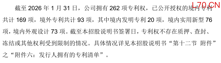 截至2026年1月31日,宇树科技拥有262项专利权,其中境内发明专利20项。更重要的是,这些专利不是堆数量,而是围绕机器人本体的核心结构、驱动、控制与感知布局。
