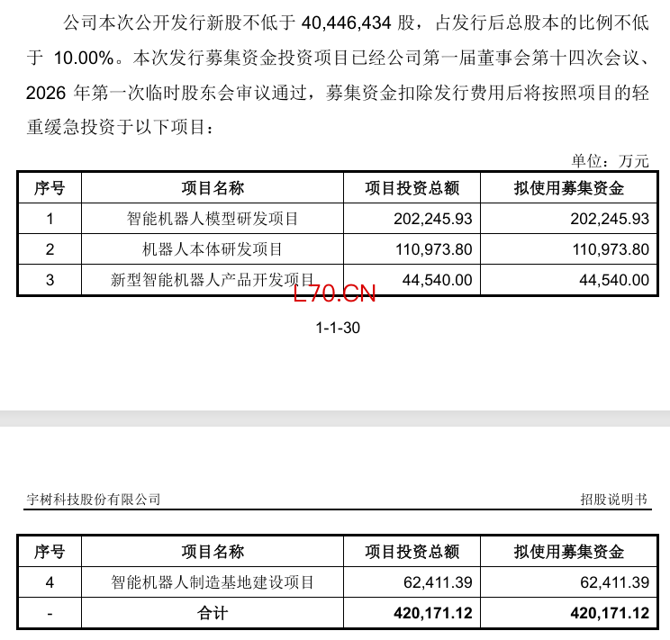 本次宇树科技IPO拟募资42.02亿元,投向四个项目。其中最大的一笔——20.22亿元,用于“智能机器人模型研发项目”,占募资总额的48%。这个项目的核心是具身大模型研发,即通常所说的机器人“大脑”。