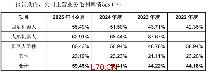 毛利层面,宇树科技毛利率从2022年的44.18%一路攀升至2025年1-9月的59.45%。核心零部件全栈自研的效果,直接体现在成本端。自研电机、减速器、激光雷达,不仅降低了外采成本,也让产品迭代不受制于供应商。