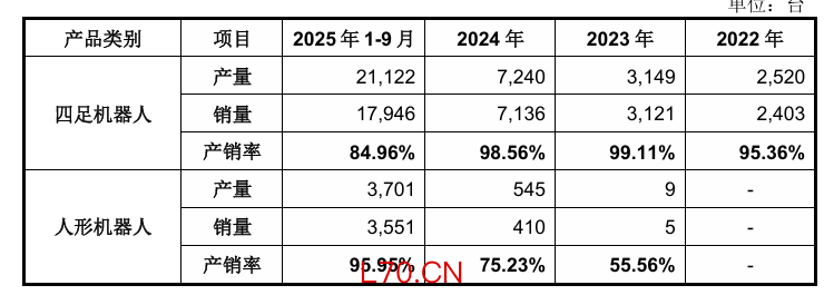 再看产能。报告期内四足机器人销量超3万台,人形机器人2025年出货超5500台。这个量级,和国内外主要竞品拉开了差距。招股书披露,2025年海外主要厂商Figure、Agility Robotics的出货量均在150台左右。特斯拉Optimus尚未公开对外发售。