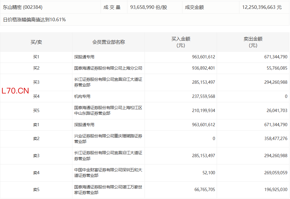 东山精密今日涨停,1家机构专用席位净买入2.38亿元东山精密今日涨停,1家机构专用席位净买入2.38亿元