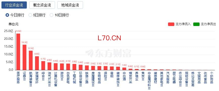 行业资金流向:23.50亿净流入医疗服务