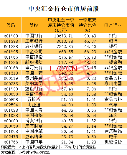 截至一季度末中央汇金持仓市值居前股出炉证券配资栏目截至一季度末中央汇金持仓市值居前股出炉