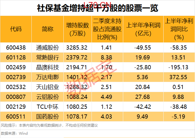 8股获社保基金二季度增持均超千万股8股获社保基金二季度增持均超千万股