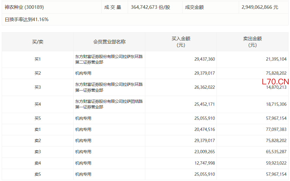 神农种业今日跌1.6%,有5家机构专用席位净卖出2.26亿元神农种业今日跌1.6%,有5家机构专用席位净卖出2.26亿元